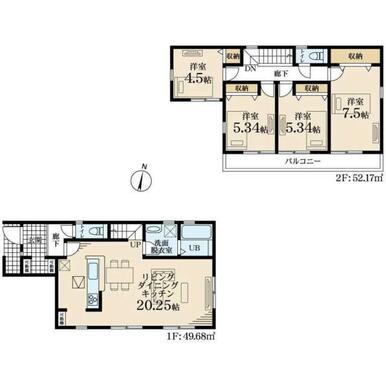 | 間取り(内訳) | 4LDK(洋7.5/5.3/5.3/4.5LDK20.2) | 建物面積 | 101.85㎡ |