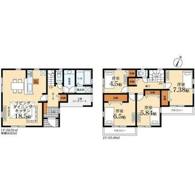 | 間取り(内訳) | 4LDK(洋7.3/6.5/5.8/4.5LDK18.5) | 建物面積 | 111.79㎡ |