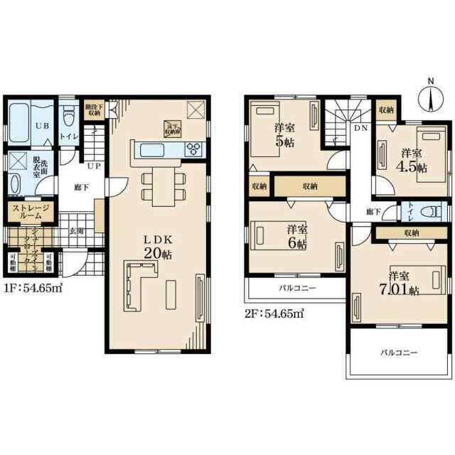 | 間取り(内訳) | 4SLDK(洋7/6/5/4.5LDK20) | 建物面積 | 109.30㎡ |