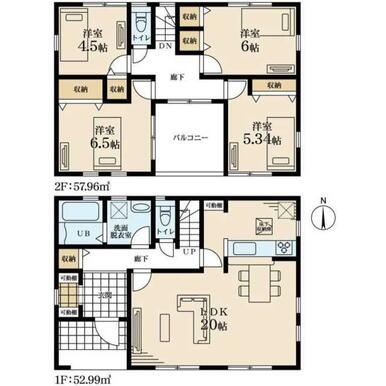 | 間取り(内訳) | 4LDK(洋6.5/6/5.3/4.5LDK20) | 建物面積 | 110.95㎡ |